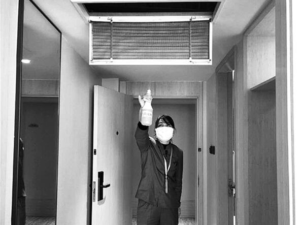 “之前酒店都是自助早餐,现在我们把其变为了分餐、送餐服务,送餐严格按照标准和规范来,工作人员测量体温、佩戴口罩、护目镜、医用手套,同时会配备送餐卡片,记录制作者和送餐者体温信息。”张建军说,“为了保障客人的安全,我们还推出了‘净新房’服务,有26道清洁步骤和6项设施全方位消毒,比如客房门把手、卫生间、座机、遥控器、空调风机等更设为重点消毒区域。”