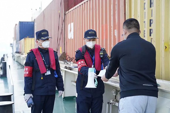 为了保障水运防疫工作落实到位,常德市水运事务中心督促指导辖区内码头、渡口做好复工复运,要求每个渡口和企业至少配备1套测温仪,安排1至2名测温人员。按照“一日一消毒、一日一巡查”的要求,对进出码头人员及靠港船舶上下人员逐一进行体温检测,如发现异常情况,立即采取相应措施进行处理。
