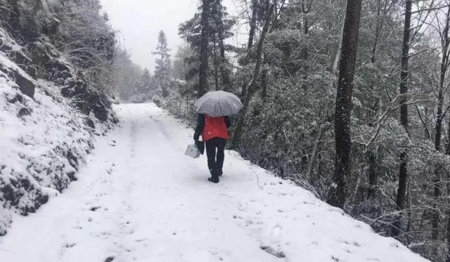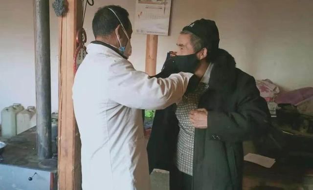 扶贫工作队队员冒雪去村民家里做健康检查。