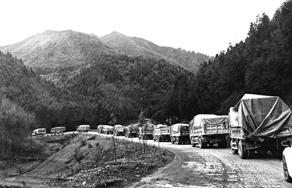 搬迁车队浩浩荡荡开出大山