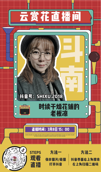 上抖音搜索#昆明邀你云赏花 get最地道的云南赏花攻略,你也可以同步分享自己的云赏花记录。待战疫胜利,我们相约再聚,必是一片繁花。直播活动得到昆明呈贡区委宣传部的以及斗南国际花卉产业集团的大力支持。