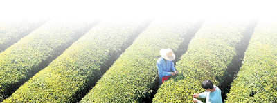 茶农在江西省吉安市泰和垦殖场生态茶园内采摘茶叶。 |