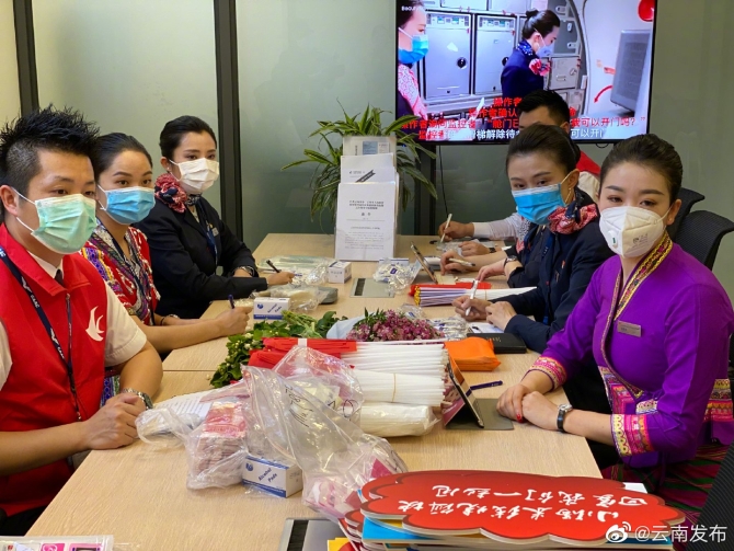 为了准备彼此接机,东航云南公司从昨天上午开始行动起来,得知可以前往湖北接医疗队回家,不少没有任务的机组成员们也行动起来。“感觉我们终于能为这次与疫情斗争做出点贡献了,当时就是抱着这样的心情去报名的。”本次前往武汉的乘务员高晋一说。
