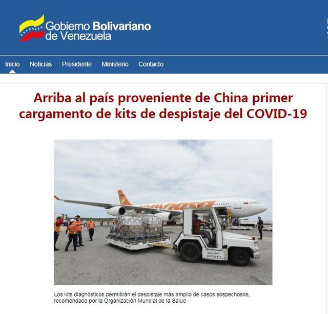 当地时间3月19日,一批医疗援助物资从中国运抵委内瑞拉,其中包括4000套新冠病毒检测试剂盒、防护服、手套等。
