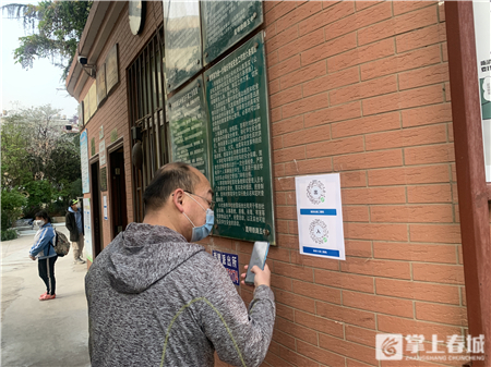 早上7点20分,记者来到位于云秀路上的官渡区第一中学(云秀书院),开学首日,在学校的1号门和2号门,同学们稀稀疏疏地有序进校,在校门口分别有保安与值班老师手持额温枪逐一对每个学生进行体温检测。