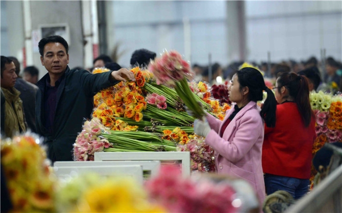 与昆明花拍中心相邻的斗南花卉批发市场,是中国最大的专类花卉批发市场,产业园区有2.5万人就业,全国95%的花卉采购商云集在斗南。3月15日,记者在斗南看到,与往日熙熙攘攘的人群相比,开市后的斗南还是清冷的。市场的一位负责人说,三八妇女节后的销售,虽然没有达到去年同期,但还是超出了大多数人的预期,滞销状况大大缓解。