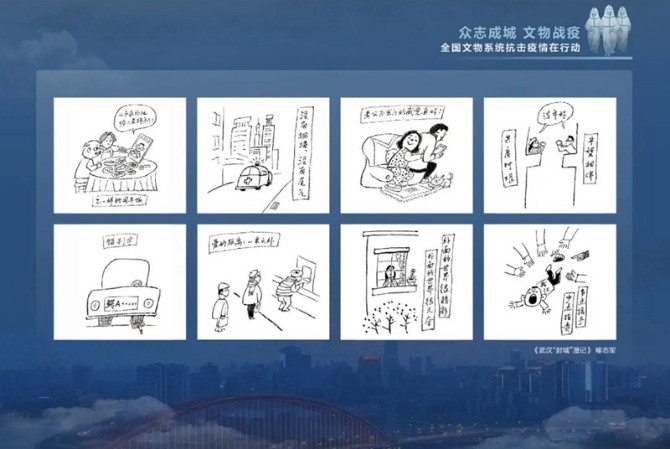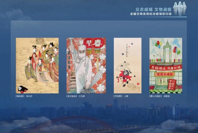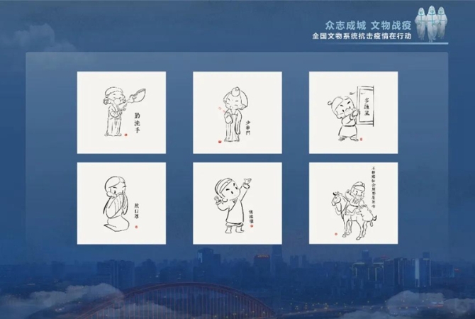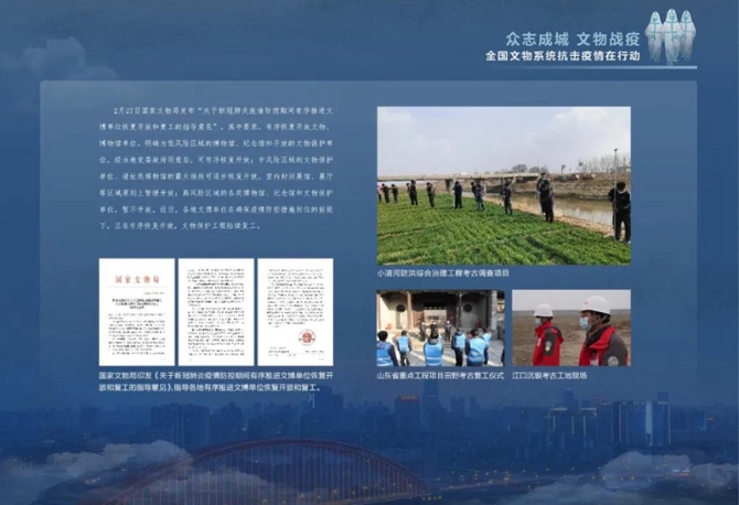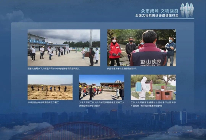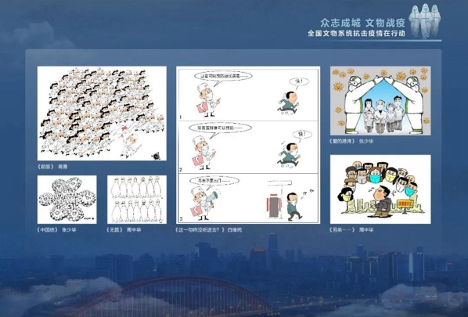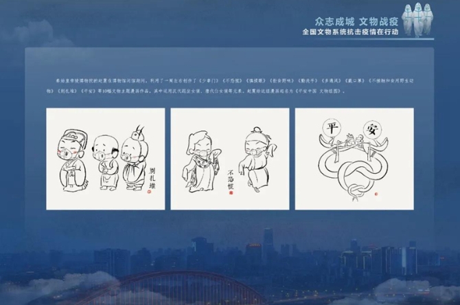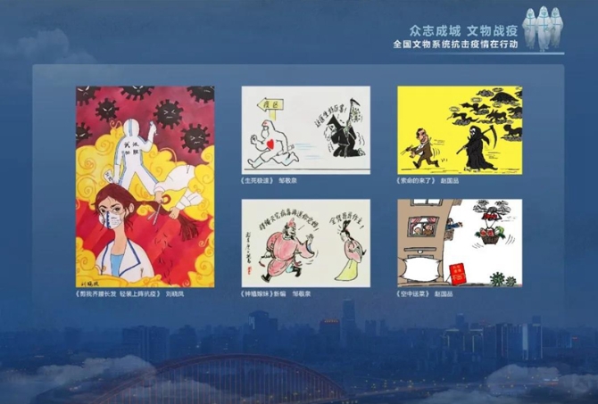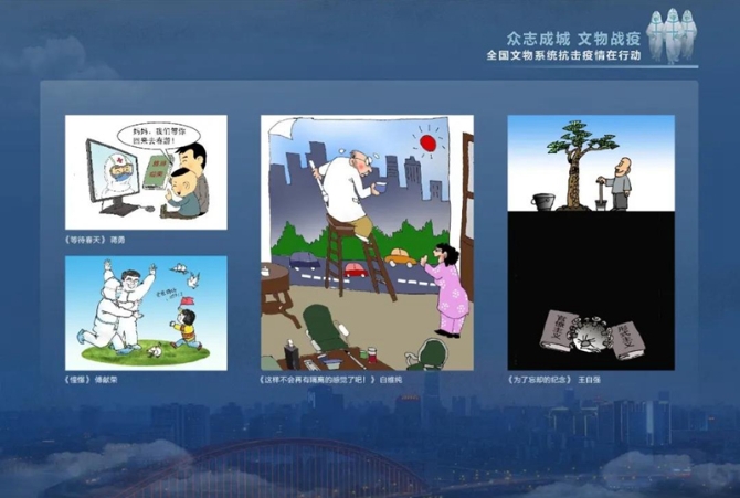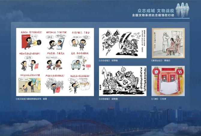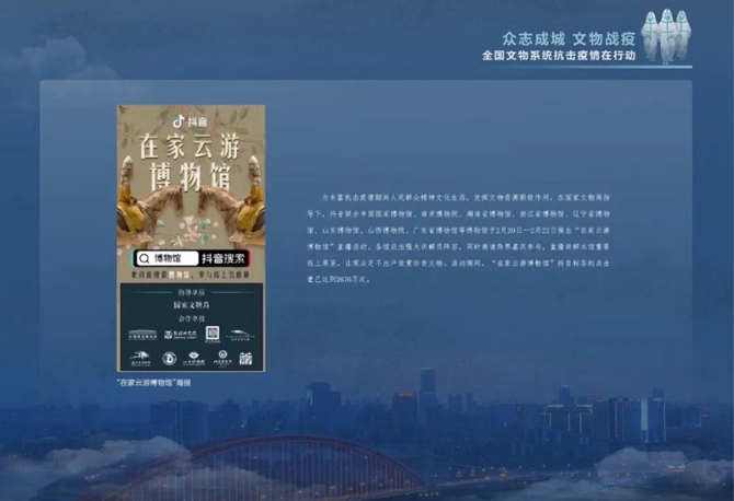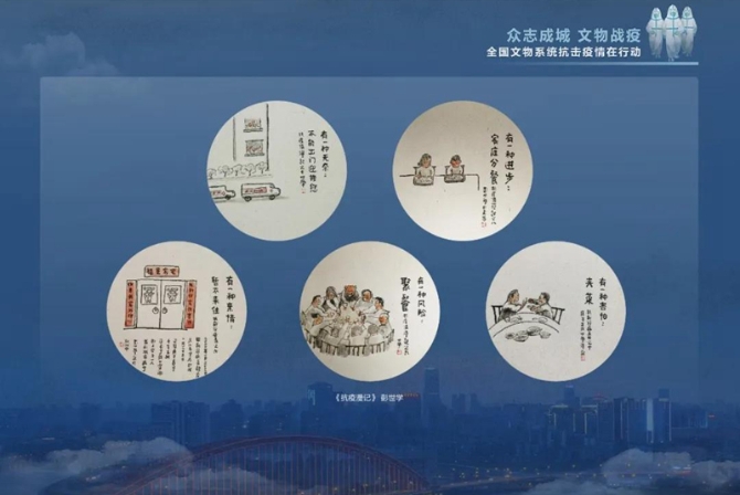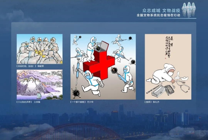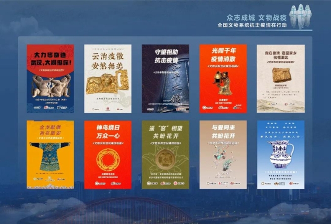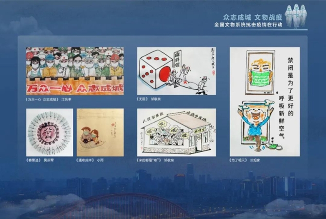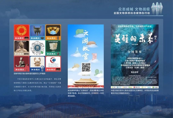 闭馆不闭展、温情不打烊、文物系荆楚、祝福颂祖国……回望文物系统在疫情防控阻击战中的作为与担当,点点滴滴,汇聚成“众志成城文物战疫——全国文物系统抗击疫情在行动”展览。