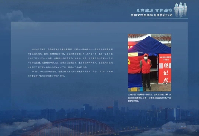 文物系统文能保文物,武能战疫情,线上送展览,线下做志愿,上下一心,携手抗“疫”,为战胜疫情贡献着自己的力量。