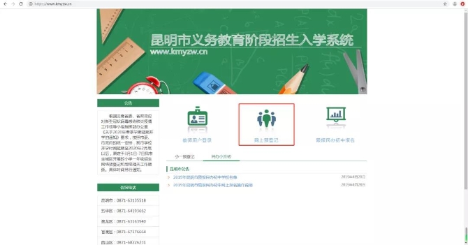 昆明市义务教育招生入学系统(www.kmyzw.cn)。