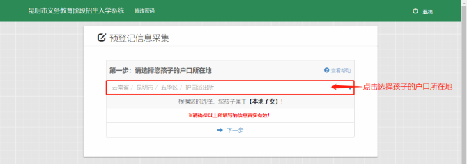 2020年昆明市主城区小学一年级网上预登记操作说明