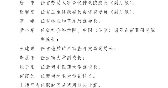 6686体育讯 近日,云南省人民政府发布了24名干部任免职通知。