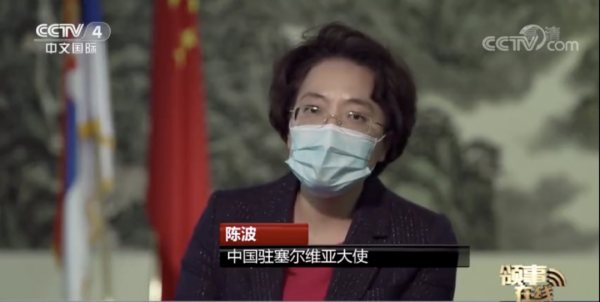 中国驻塞尔维亚大使 陈波: 中塞两国之间有着传统的深厚友谊,我们一直说中塞之间有着钢铁般的友谊 。那么这种友谊在两国共同抗击疫情的斗争当中,得到了充分的体现。 这两天说的最多的一句话就是铁杆朋友,风雨同行。这句话确实是当前在抗击疫情的形势下,中塞关系的真实写照。那么在中国,在咱们国内发生疫情之后,塞尔维亚人民,从他的总统到政府到普通的塞尔维亚民众,无论是从道义上,还是在物质上都给予了中方积极的支持和帮助。当塞尔维亚发生疫情之后,在塞尔维亚人民提出希望中国予以支持、予以帮助的这个诉求以后,中国也做出了非常积极的反馈,不仅是我国政府,同时我国的人民也做出了非常积极的反馈。