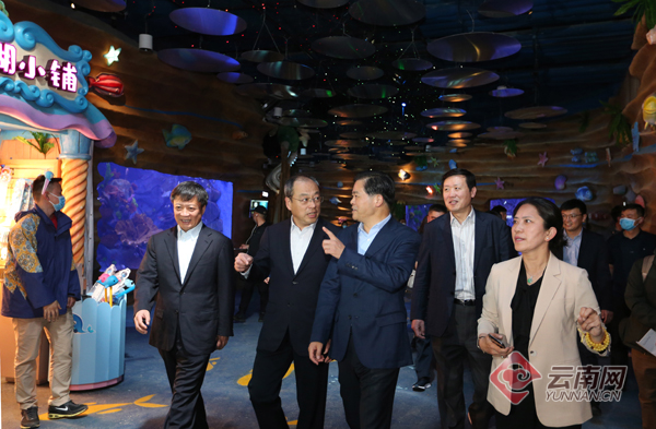 当天下午,陈豪、阮成发率队来到昆明融创文旅城进行实地调研。位于昆明主城西部草海片区的融创文旅城,包括主题乐园、特色小镇、星级酒店群等核心业态,项目总建筑面积190万平方米,全部建成后预计将提供就业岗位约3万个。不久前,昆明融创文旅城已经恢复试运营。