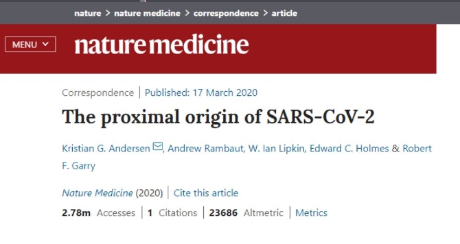 根据科学杂志《自然医学》发表的证据分析表明,新冠病毒“不是在实验室中构建的,也不是有目的性的人为操控的病毒”。