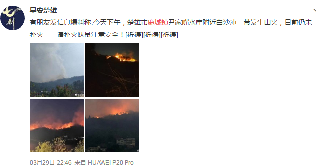 大理州鹤庆县人民政府新闻办公室消息,3月29日15时18分,鹤庆县草海镇小水渼村委会东面山场发生森林火情。