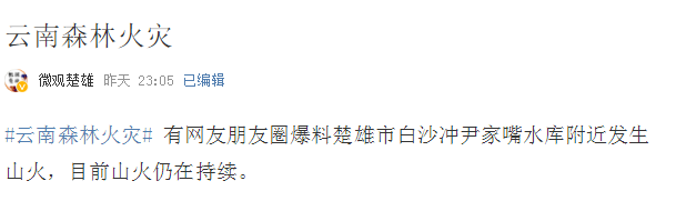 3月29日,云南楚雄、大理、丽江接连突发山火,目前山火仍在紧张扑救中。而丽江的火情疑因村民祭扫上坟导致,目前嫌疑人已被控制。