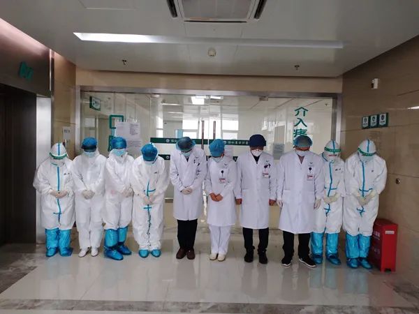武汉市金银潭医院在门诊广场集体向抗击新冠肺炎疫情斗争牺牲烈士和逝世同胞致以深切哀悼。(武汉市金银潭医院纪委供 俞薇 摄)