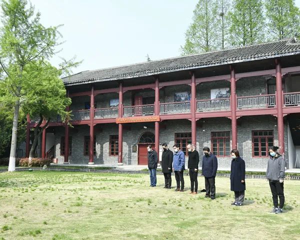 武汉革命博物馆干部职工在中共五大会址默哀。(武汉革命博物馆供 钱孟聪 摄)