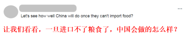 “让我们看看,一旦进口不了粮食了,中国会做得怎么样?”在关于粮食出口禁令的新闻下方,有外国网友这样评论道。