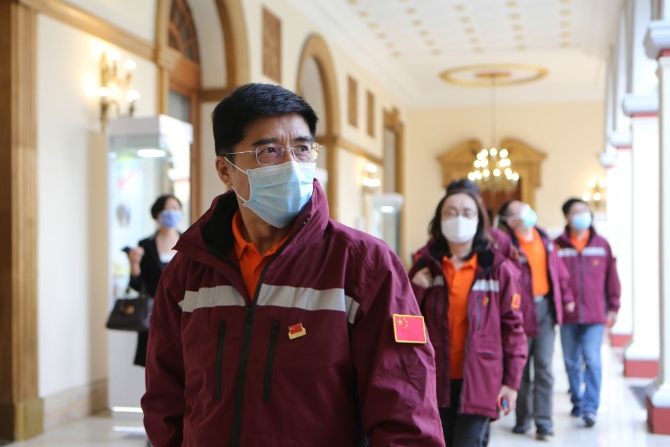 4月1日,中国抗疫医疗专家组进入委内瑞拉总统府。委内瑞拉总统府供图