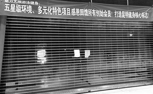 4月6日,记者接到昆明市民李先生爆料,称自己是昆明市魅力无限游泳健身的会员,本来打算复工复产以后去锻炼锻炼,可3月底当李先生来到这家健身房时,只见大门紧锁,该健身房另一家分店魅力无限游泳健身(新光店)也是大门关闭。李先生告诉记者:“健身房自春节前关门以后就再也没有营业,很多会员之前交了钱,几乎都还没有使用过,现在人去楼空,损失金额少则数千元,多则数万元!”