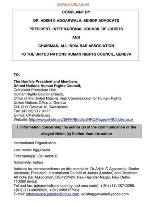 一家名为GreatGameIndia的网站宣称,4月4日,国际法学家协会(The International Council of Jurists)会长艾迪思·阿格瓦拉代表国际法学家协会和全印律师协会(The All India Bar Association)向联合国人权理事会提出申诉要求中国赔偿,理由是“秘密发展大规模杀伤性生物武器新冠病毒”而造成人类灾难。