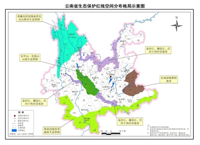 同时,此次生态保护红线评估调整工作实现了全省生态保护总体格局稳定且局部优化。 2018年6月29日,云南省人民政府发布《云南省生态保护红线》,明确全省生态保护红线面积11.84万平方千米,占国土面积的30.90%,生态保护红线格局划定为“三屏两带”。“三屏”指青藏高原南缘滇西北高山峡谷生态屏障、哀牢山—无量山山地生态屏障、南部边境热带森林生态屏障。“两带”指金沙江、澜沧江、红河干热河谷地带,东南部喀斯特地带。生态保护红线评估调整工作现阶段取得的成果在维持“三屏两带”基本格局的前提下,对其进行了局部优化。通过评估调整,全省生态保护红线图斑个数由53000余个降低至13000余个,其中生态保护红线内永久基本农田、人工商品林、合法矿业权等与生态保护红线划定冲突矛盾情况图斑数量调出减少约6500个,生态保护红线图斑的破碎度大幅下降,生态系统完整性和生态廊道连通性得到显著提高。