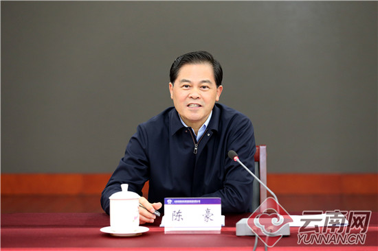 4月10日,省委书记陈豪在云南建投集团主持召开座谈会,听取有关工作汇报并发言。记者 雷桐苏/摄