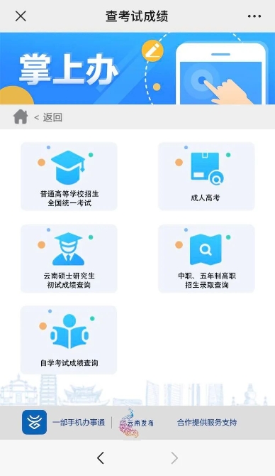 “查考试成绩”支持普通高等学校招生全国统一考试、成人高考、云南硕士研究生初试成绩、自学考试成绩查询以及中职、五年制高职招生录取查询,超实用的有木有?赶紧把这个功能收藏起来吧!