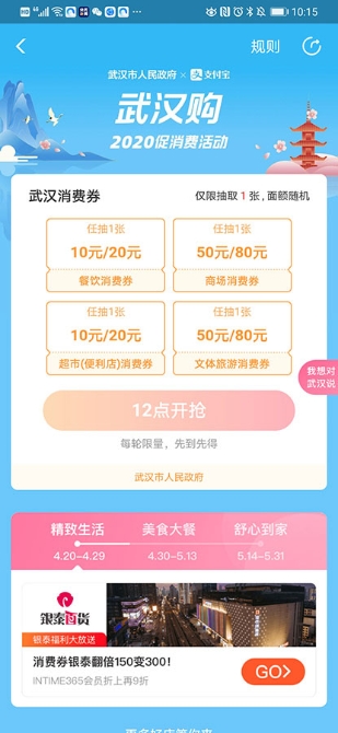 支付宝上的武汉消费券抢券活动页面