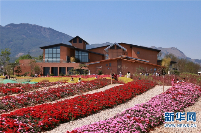 云南澄江抚仙湖畔花开正艳醉游人 新华网记者 张翼鹏 摄