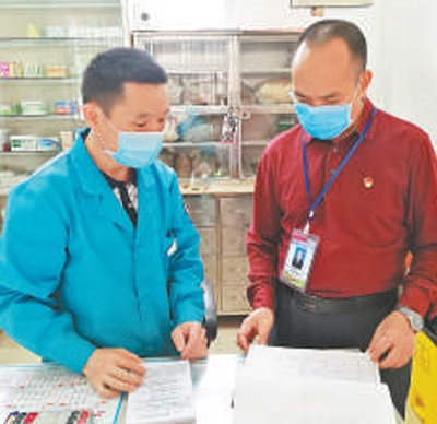 陆林锋(右)到村卫生室走访。 谭必进摄