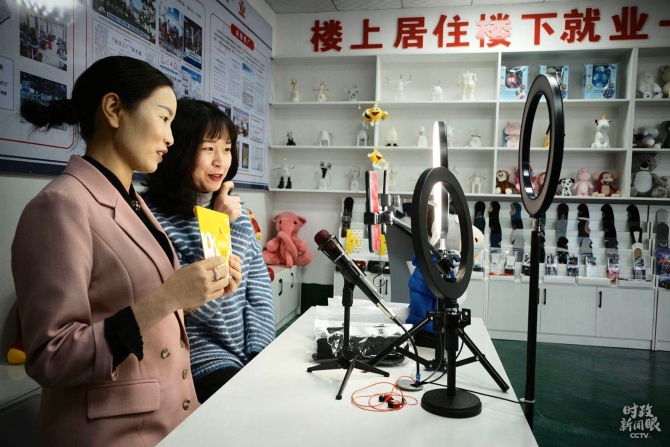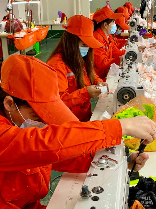 △这是开办在社区内的工艺制品厂,工人正在加工毛绒玩具。(总台央视记者李辉拍摄)