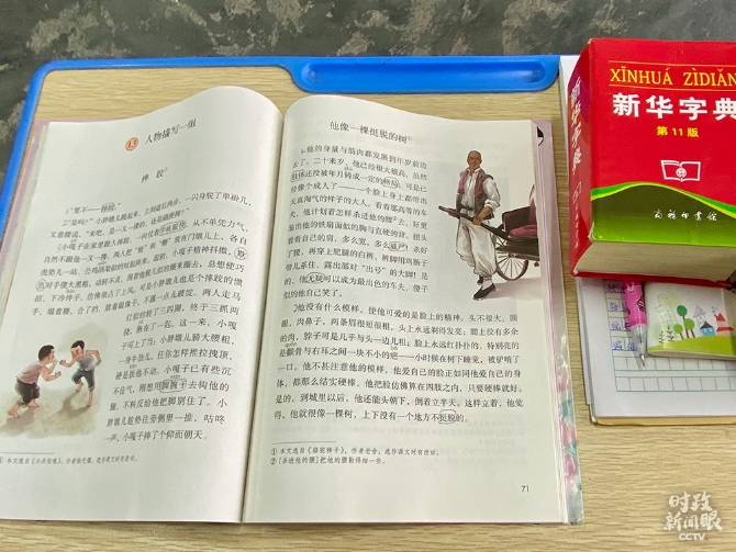 △今天的课文《摔跤》节选自《小兵张嘎》。(总台央视记者段德文、彭汉明拍摄)