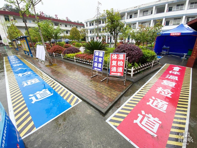 老县镇中心小学是4月20日开学复课的,采取错时入校离校、错峰就餐安排,每天早午晚定时对师生开展体温检测。