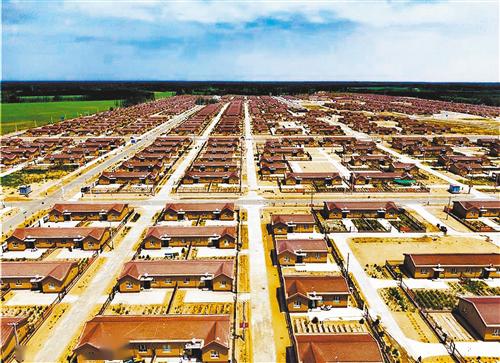 在和田地区策勒县策勒镇西南方向的国道旁,坐落着占地6500多亩的津南新村,漂亮的富民安居房分布在宽敞的柏油路两侧,农业设施温室区整齐划一。393户贫困家庭1249人告别高寒山区,在这里安了新家。