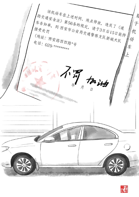 陕西省西安市一位父亲因孩子患重病不得已违停,执勤交警开出了一张特殊的“温情罚单”。罚单以教育为主,同时写下“不罚,加油”来鼓励车主,希望孩子早日康复。