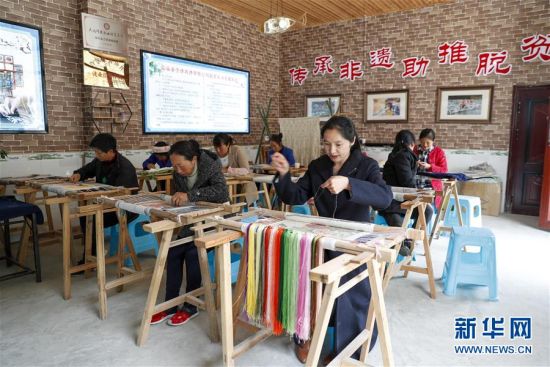 近年来,重庆市巫溪县天元乡针对留守妇女、贫困及残疾人群开展刺绣培训,设立绣娘扶贫车间,开发出挂画绣品、抱枕绣品等系列文创产品,帮助当地村民就业增收。 新华社发(黄伟摄)
