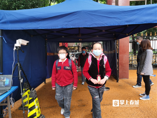 “上网课没有到学校有意思,我还是喜欢和朋友们一起学习,最想念的就是我的数学老师,她特别温柔!”在武成小学门口的体温监测点,已划分出了清晰的“入校通道”和“备用通道”,学校四五六年级率先开学的同学们做好间隔,排队进入红外线体温检测区域。