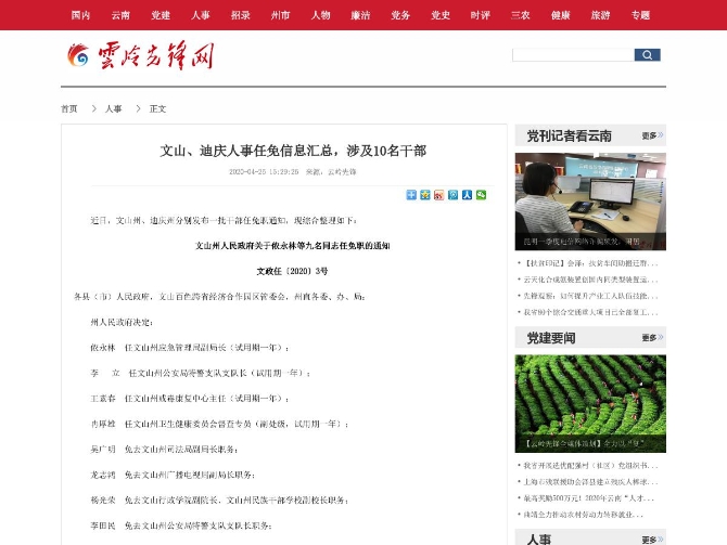 6686体育讯 机器人小明 近日,文山州、迪庆州分别发布一批干部任免职通知,现综合整理如下: