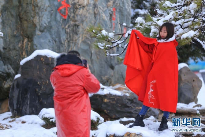 图为4月26日,游客在玉龙雪山景区赏雪。(新华网 丁凝 摄)