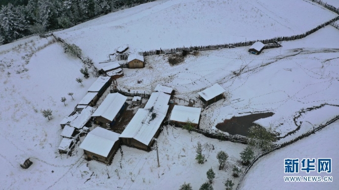 图为4月26日,航拍视角下的玉龙雪山景区雪景。(新华网 赵普凡 摄)