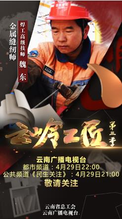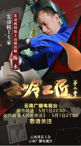 同时,《云岭工匠(第二季)》于4月29日至5月3日进行重播,播出时间为都市频道(YNTV2)12:45,公共频道(YNTV6)13:08。(云南网 记者贺凯)