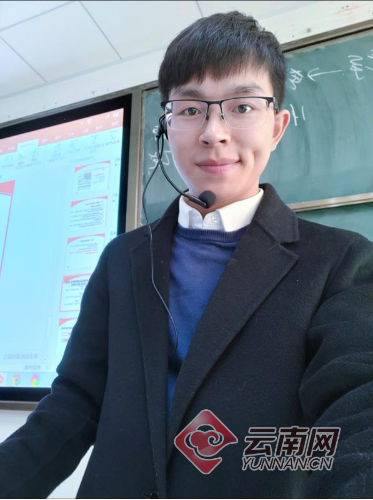 刚工作不久的黄风,是一名昆明理工大90后思政课教师。如何让一群只比自己小几岁的00后学生静下心、抬起头、学得好是他要面对的首要问题。为了讲好思政网课,他利用“开学第一课”“让学生讲思政课”“即兴小课堂”“弹幕答疑”、课间才艺表演等形式赢得了学生们的喜爱。他说:“一堂让学生喜欢的思政课,其实不是老师一个人在奋斗,而是师生合力改变的结果。” 昆明理工大供图