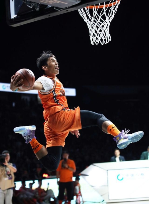 出生于1993年的矣进宏,今年斩获了2020年CBA全明星周末扣篮大赛冠军。出生在云南省玉溪市易门县铜厂乡西山村的他身高不足1米8,却通过“把沙袋绑在腿上,在山沟里跑,在石头路上蛙跳”的方式,成长成了“云南滑翔机”,凭着飘逸、高超的扣篮技艺走红网络。图为矣进宏在cba全明星扣篮大赛决赛中夺冠。新华社记者 孟永民 摄