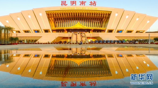 昆明南站用“孔雀开屏、鲜花绽放”的形象迎接八方来客,是中国西部地区大型综合性交通枢纽之一。
