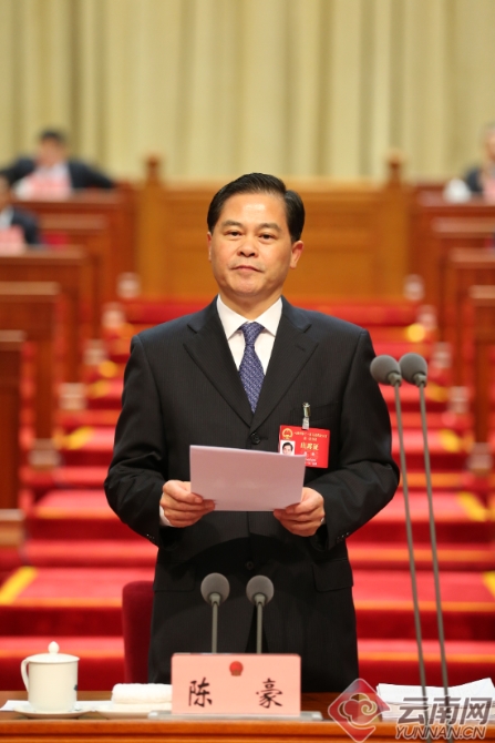 云南省第十三届人民代表大会第三次会议在昆明开幕,会议主席团常务主席、第一次全体会议执行主席陈豪主持开幕大会。记者 陈飞 摄