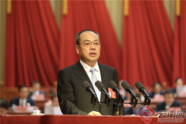 云南省第十三届人民代表大会第三次会议在昆明开幕,省长阮成发代表省人民政府向大会作政府工作报告。记者 陈飞 摄
