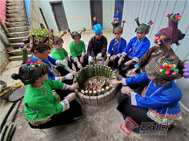 “姑娘茶”制作过程中,正在对茶叶进行烘烤。