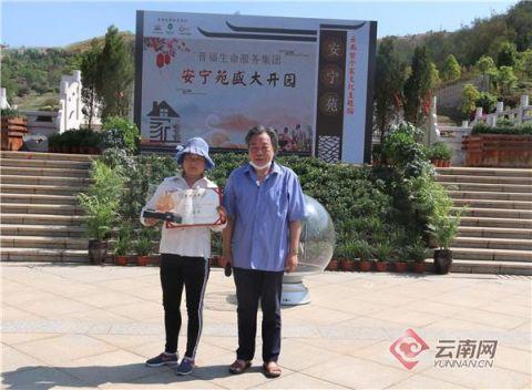云南网讯(记者 赵岗)5月10日,昆明市晋宁区晋福古园举行“百家训”文化征集活动颁奖典礼暨安宁苑家文化生命纪念园开园仪式,为“百家训”文化征集活动中的获奖者颁奖。据悉,此次开园的安宁苑为云南首个家文化生命纪念园。